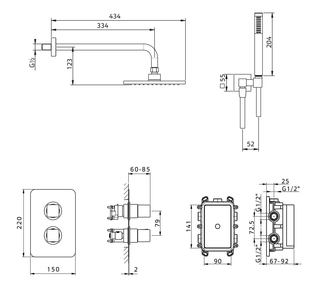 Properties "Aragon - Douche inbouwset (compleet) chroom incl. Tec-Box"