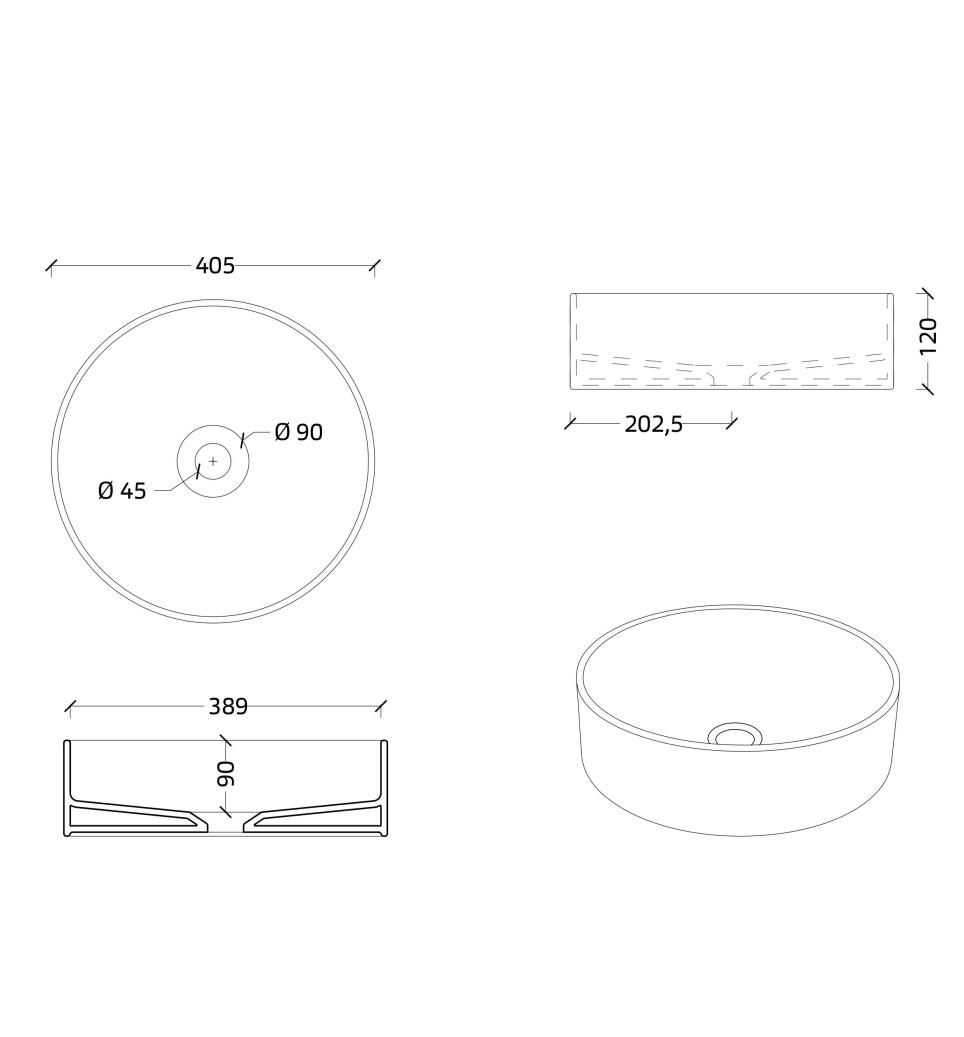 Coco opbouwwastafel rond 40 keramisch wit glans