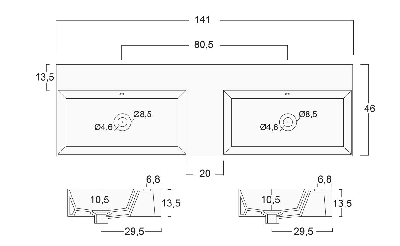Properties "Dolce keramisch wastafelblad 140 met 2 kommen (141x46) cement"