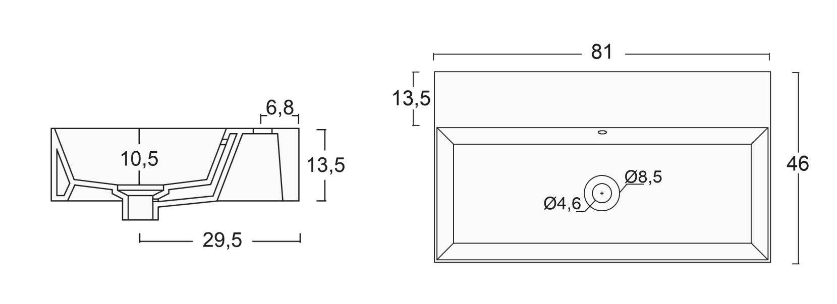 Properties "Dolce keramisch wastafelblad (81x46) Wit mat"