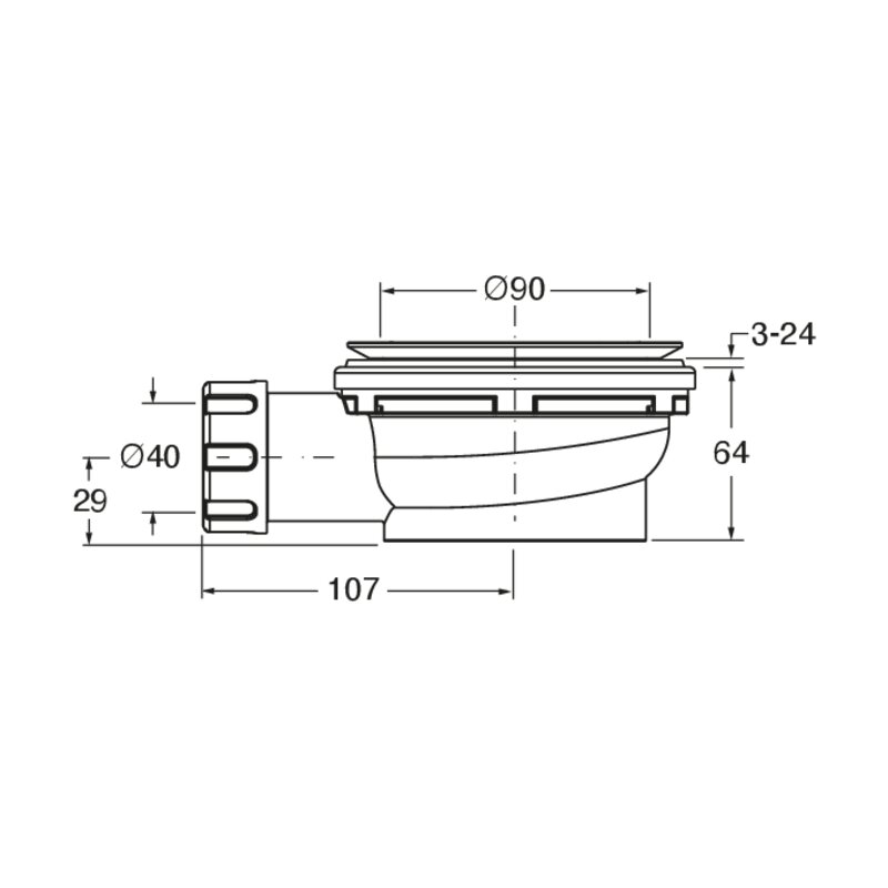 Properties "Douchebakafvoer 90mm zonder deksel t.b.v. Plane/Flat Zero/Easy Tray douchevloer - 27L/min (0,45L/s)"