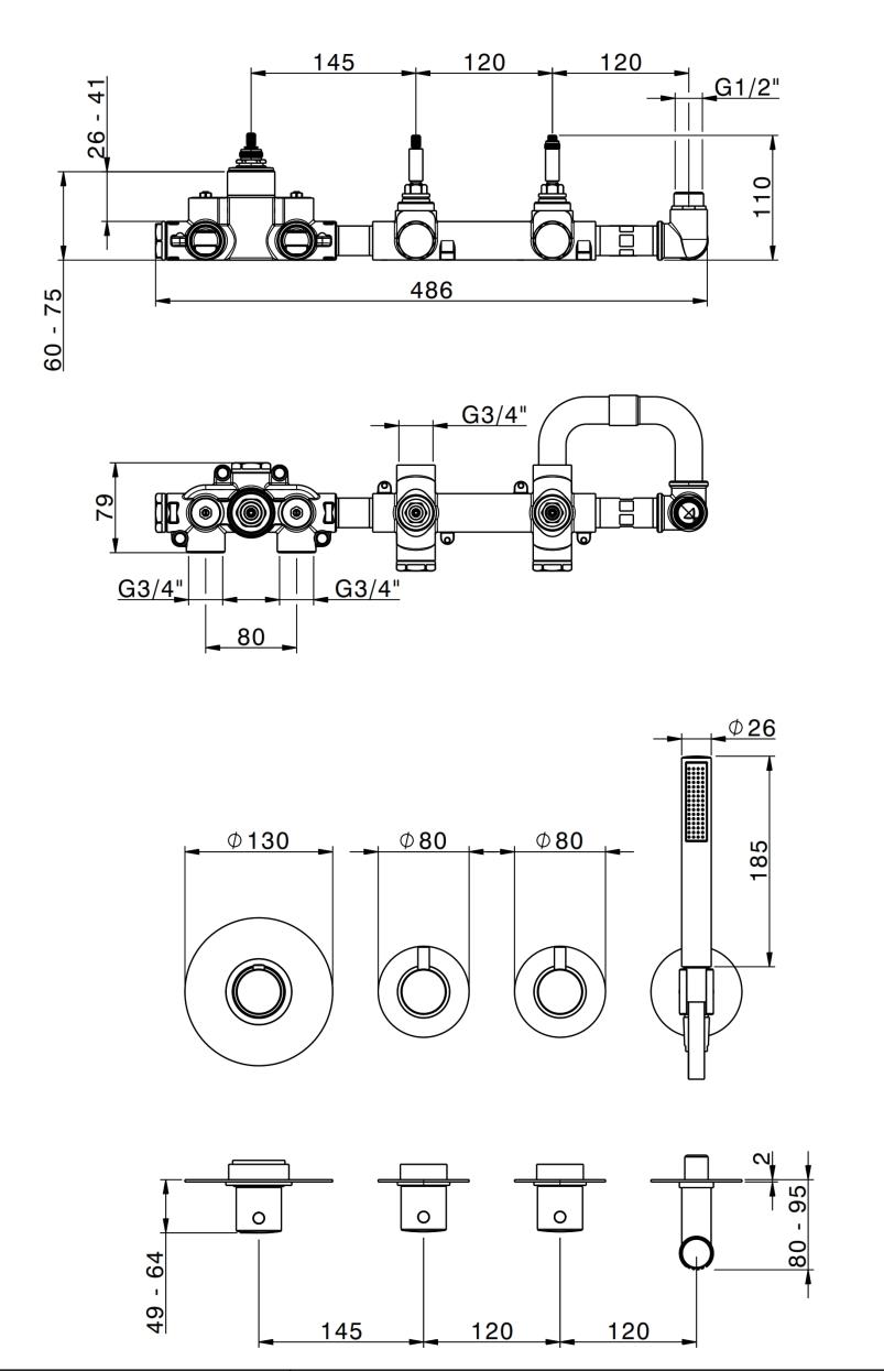Properties "Duero - Inbouw badkraan met twee functie chroom DUMMY"