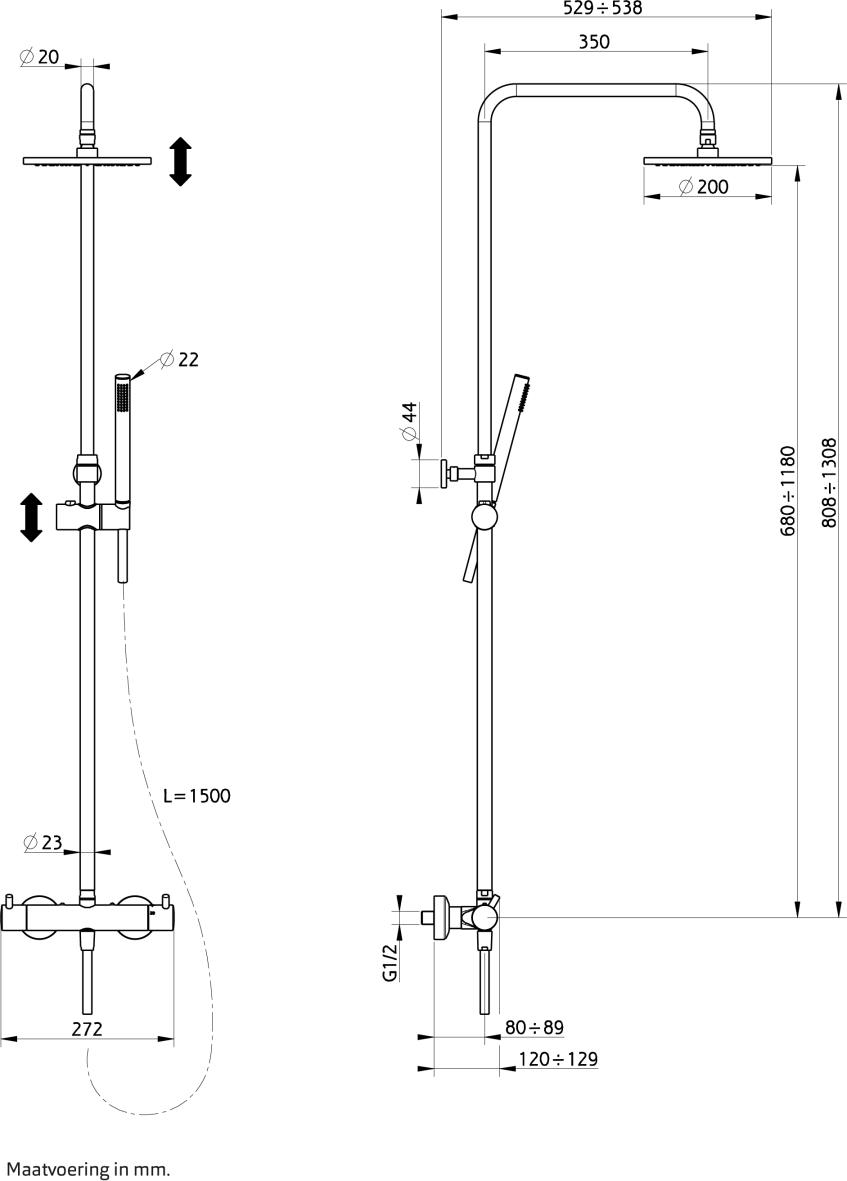 Properties "Duero - douche opbouwset (telescopisch) brons"