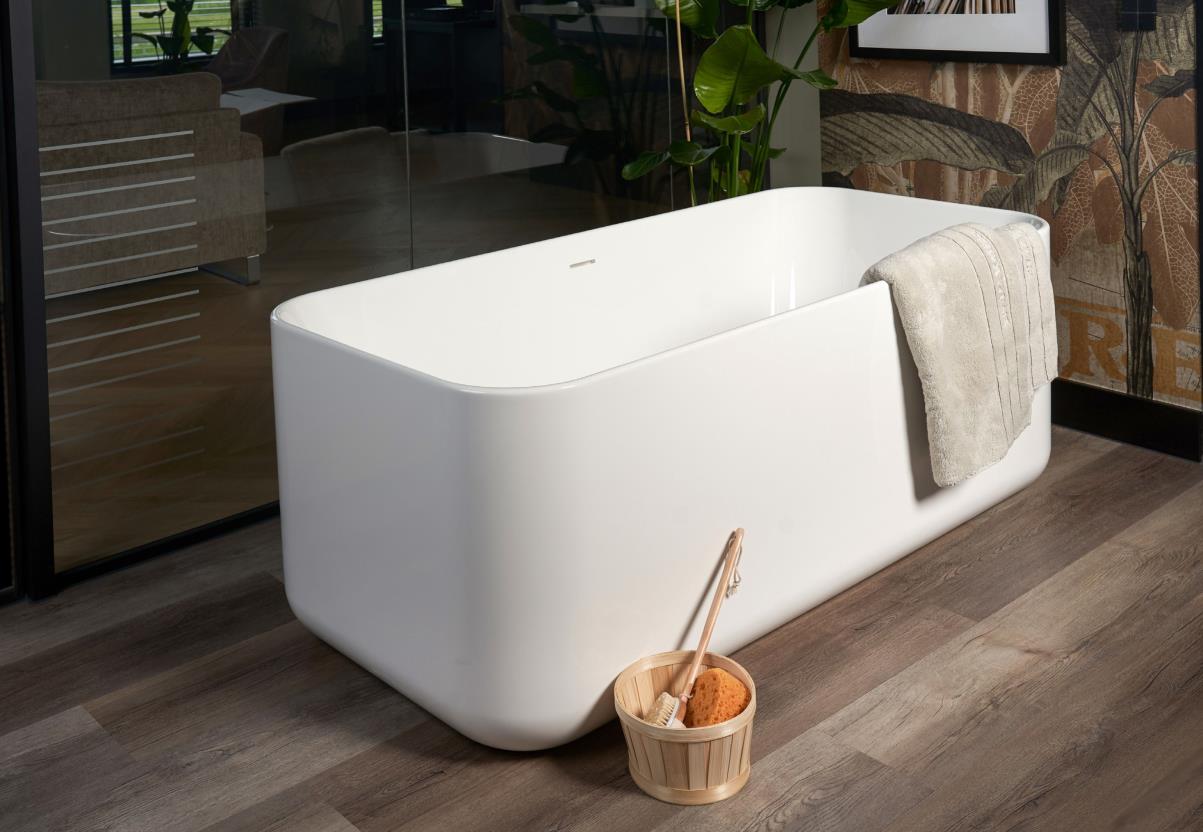 Dit royale bad is uniek door de rechthoekige vorm en schuine zijden aan beide kanten. De badafvoer bevindt zich in het midden. Vrijstaand bad Fenna is het ideale bad om met twee personen te genieten van een heerlijk bad.