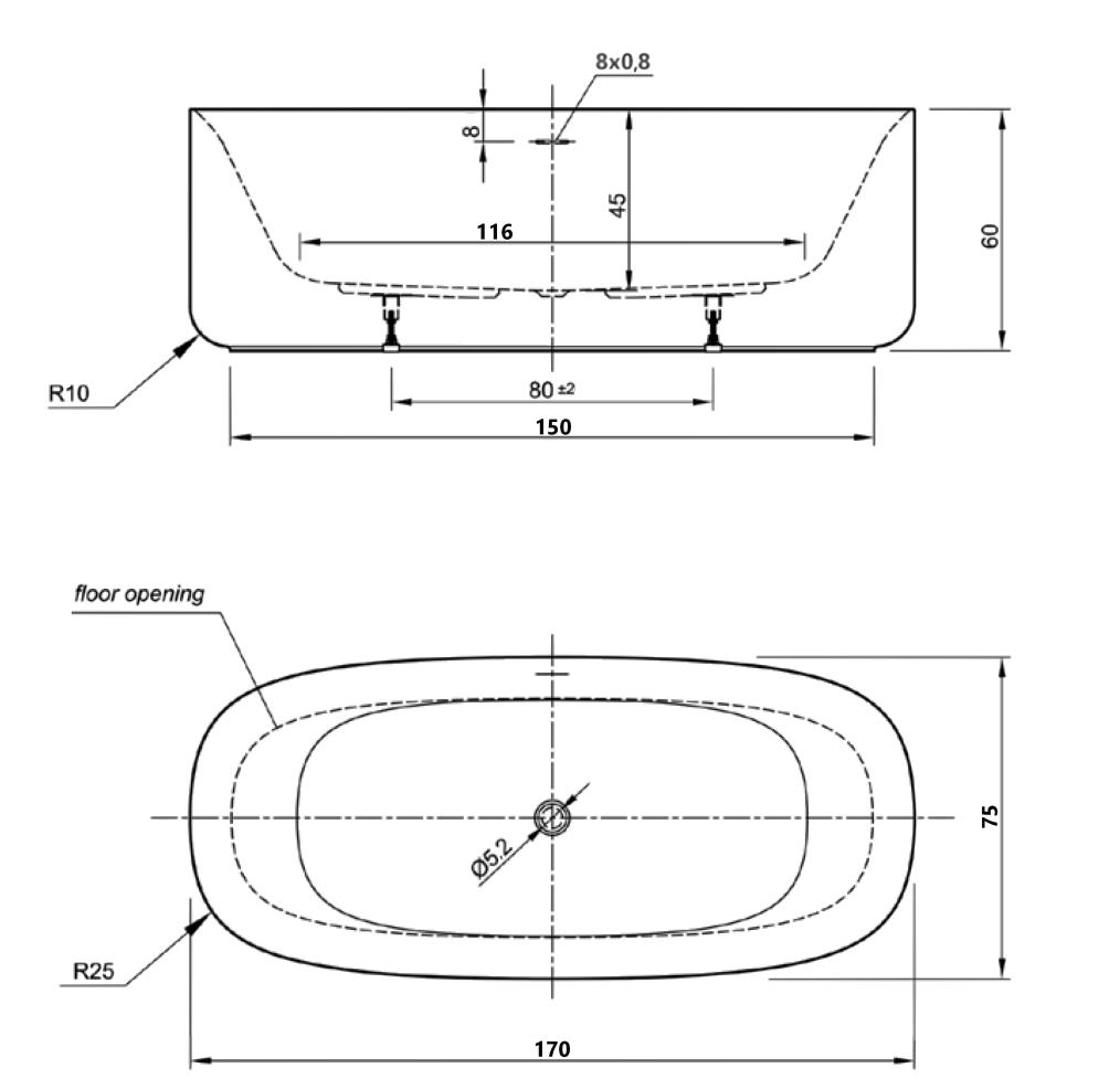 Properties "Fleur vrijstaand bad 170x75x60, sleuf overloop, klikwaste, mat wit"