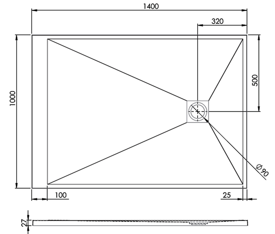 Forte douchevloer ultralight 100x140x2,7, incl afvoer met cover, mat wit