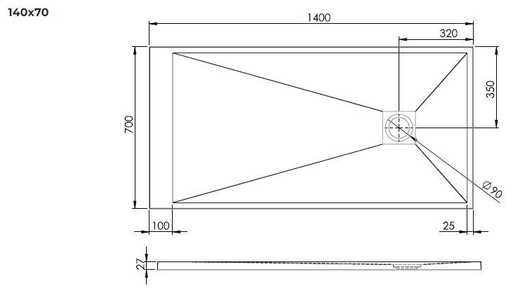 Properties "Forte douchevloer ultralight 70x140x2,7, incl afvoer met cover, mat wit"
