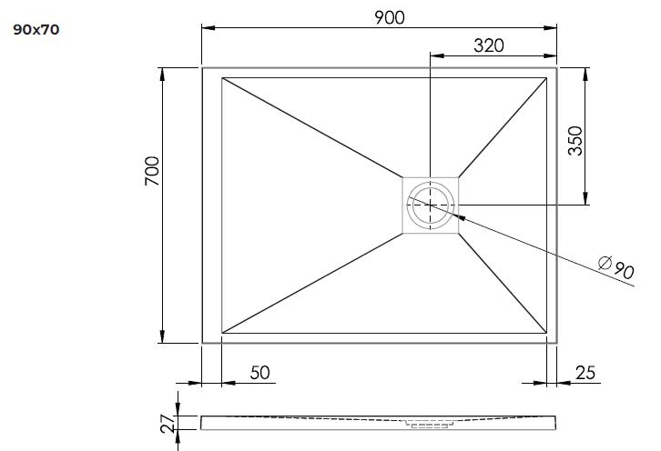 Properties "Forte douchevloer ultralight 70x90x2,7, incl afvoer met cover, mat wit"