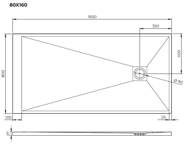 Forte douchevloer ultralight 80x160x2,7, incl afvoer met cover, mat wit