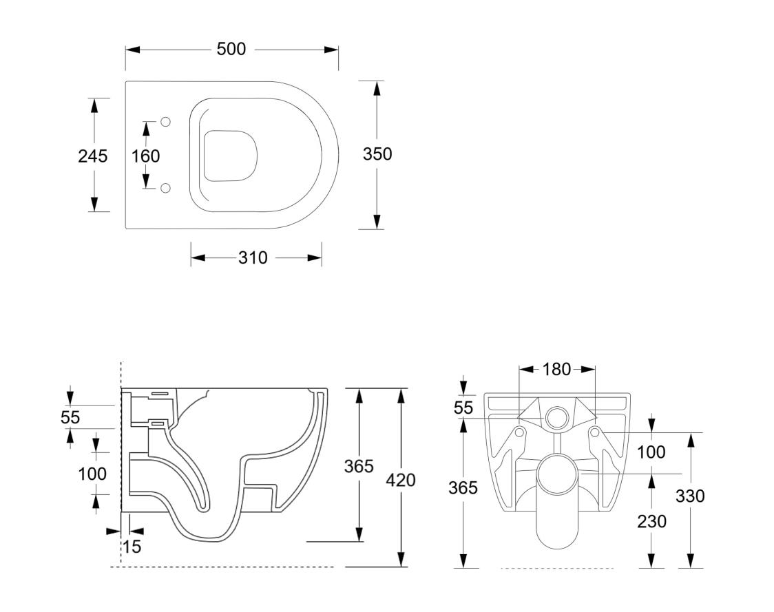 Properties "Gio rim free wandcloset 50 cm excl. zitting, incl. montageset antraciet mat - UITLOPEND"