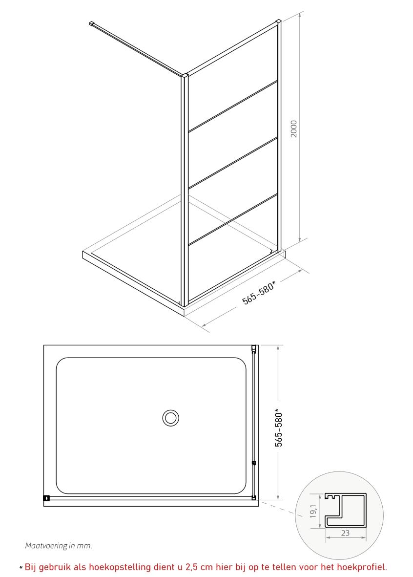 Industrial Line Premium inloopwand 60/zijwand voor hoekopstelling 60 incl. stabilisatiestang