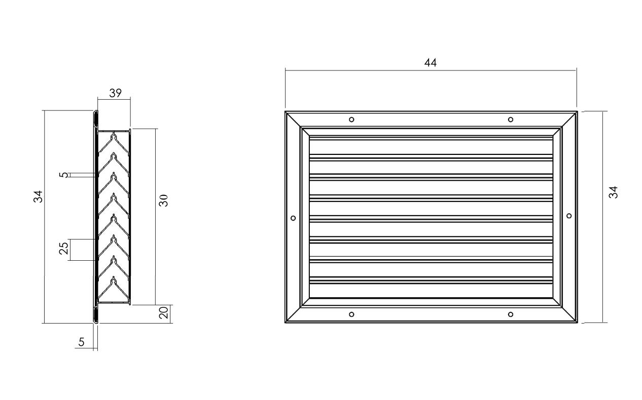 Properties "Lamellenrooster serviceluik 30x40 cm, aluminium, v-lamel, wit"