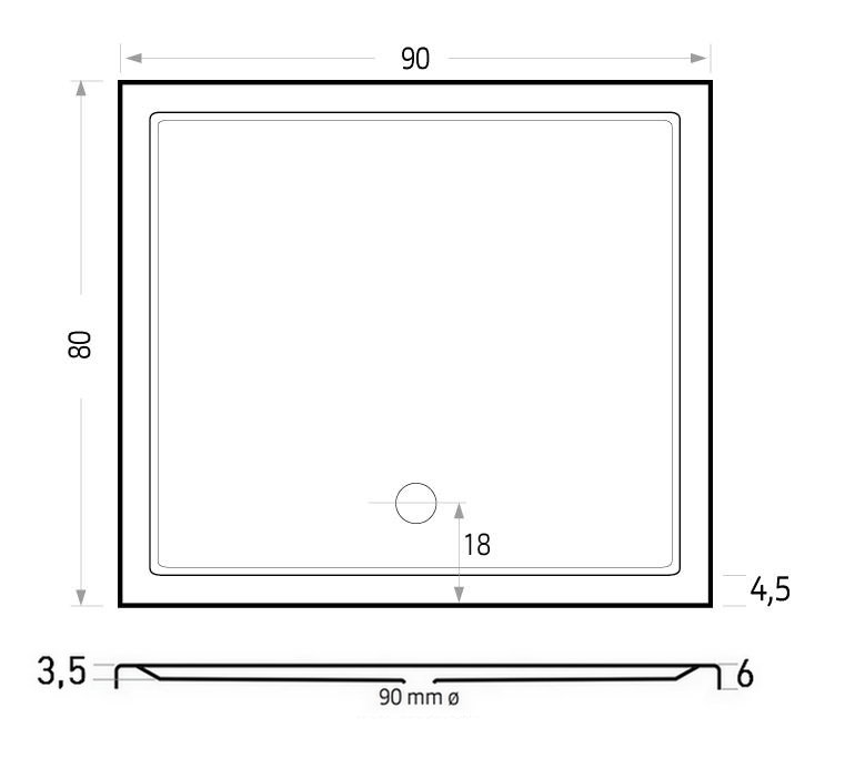 - 90x80x6 cm (LxBxH)