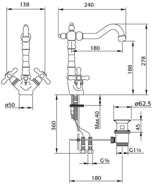 Melrose - Wastafelkraan met waste chroom
