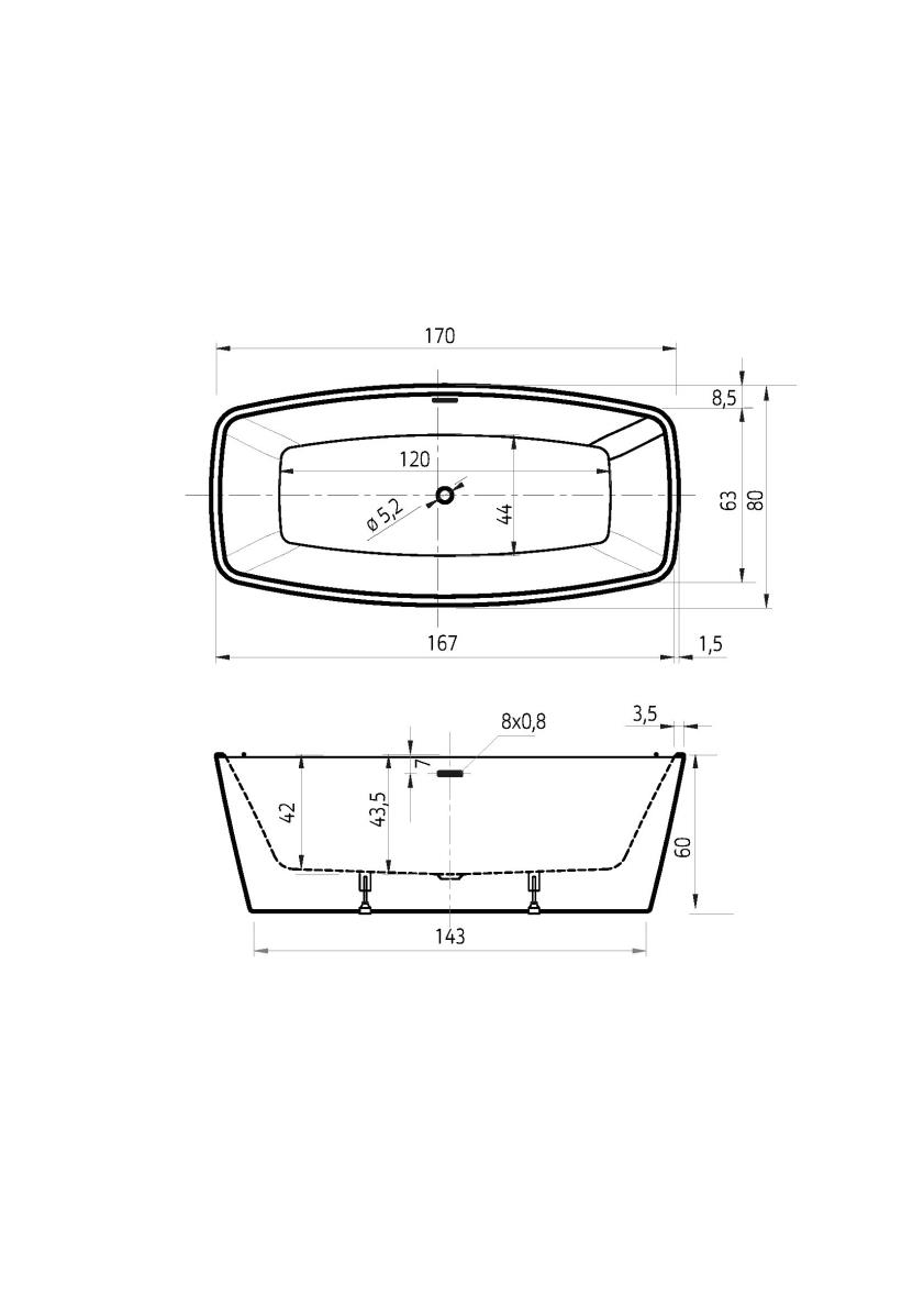 Properties "Moniek 170x80x60 vrijstaand bad mat wit incl. sleuf overloop/afvoer mat wit"