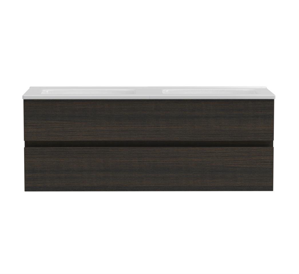Properties "Onderkast met twee lades, 46,5 cm diep, wastafelblad, zonder kraangat. Donker eiken"