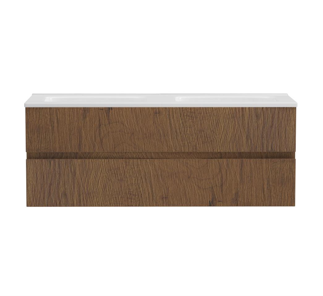 Onderkast met twee lades, 46,5 cm diep, wastafelblad, zonder kraangat. Oakfield vert.