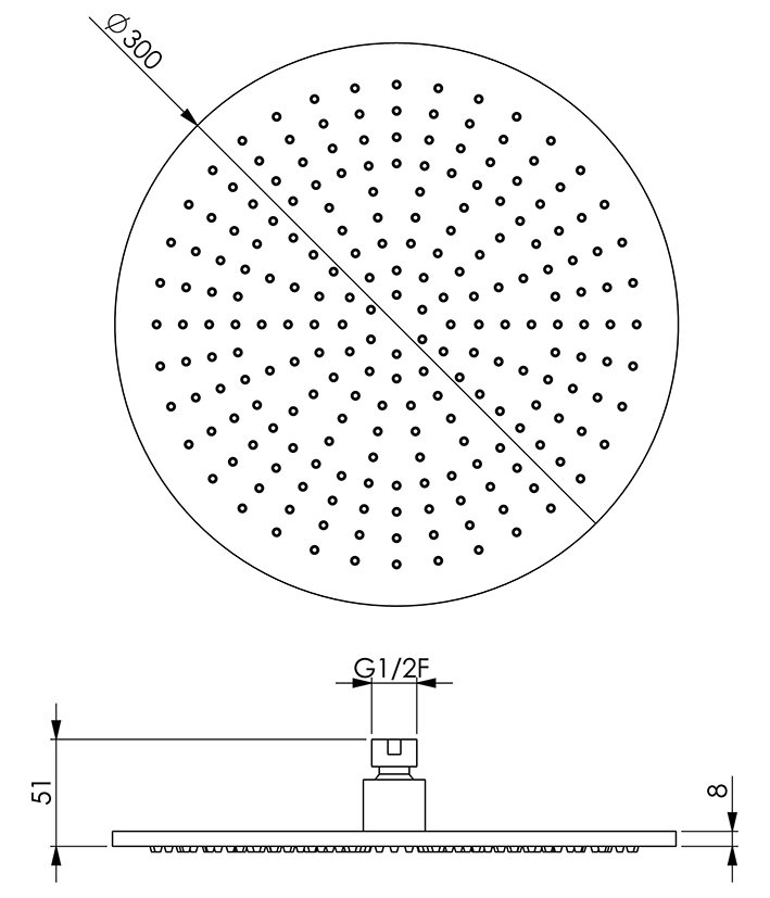 Deze regendouche is verkrijgbaar in verschillende kleuren en heeft een doorsnede van 30 cm. De dunne douchekop heeft een minimalistisch uiterlijk en past perfect in een moderne badkamer. Afhankelijk van je voorkeur kan de losse regendouche gecombineerd worden met plafondbuis of wandarm.