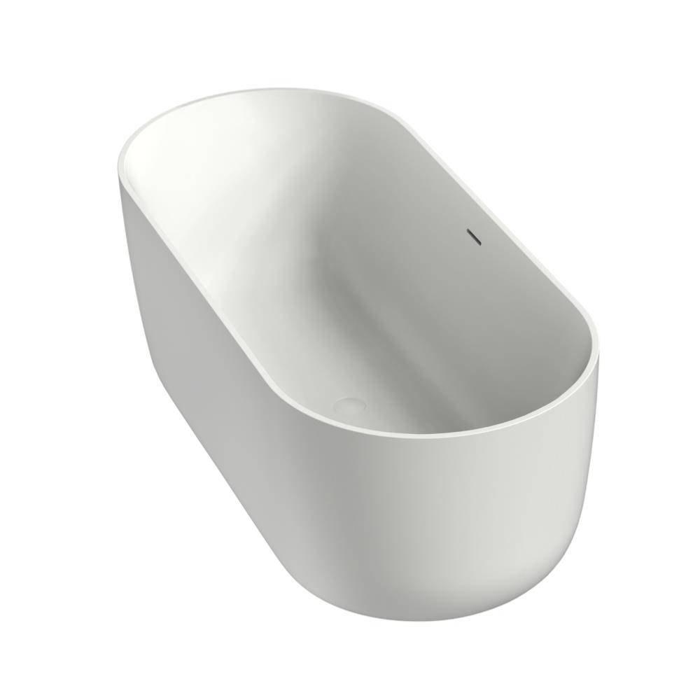 De badafvoer bevindt zich in het midden. Vrijstaand bad Sanne is verkrijgbaar in Wit en Edelweiss. Het bad is ook in een groter formaat verkrijgbaar.