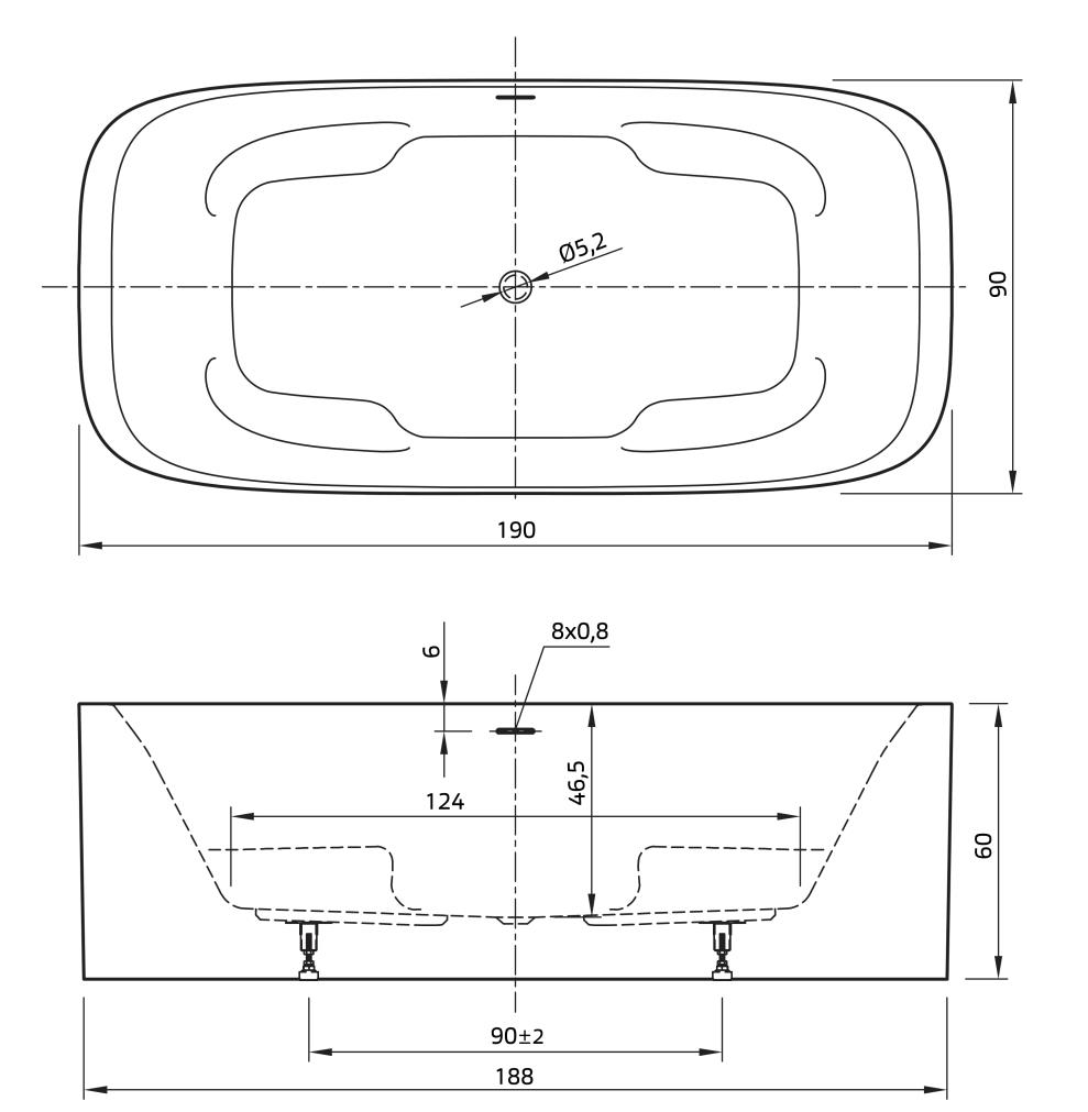 Vrijstaand bad Xenz Vera 190x900x60cm